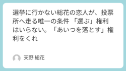 総花の愛の哲学 選挙に行かない総花の恋人が、投票所へ走る唯一の条件 「選ぶ」権利はいらない。「あいつを落とす」権利をくれ
