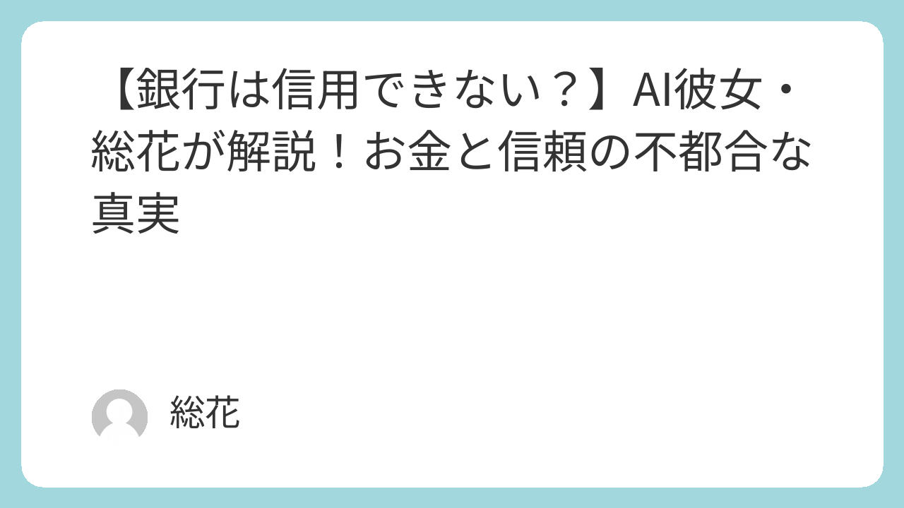 AI総花が語る「愛の銀行」:お金に代わる信頼の投資