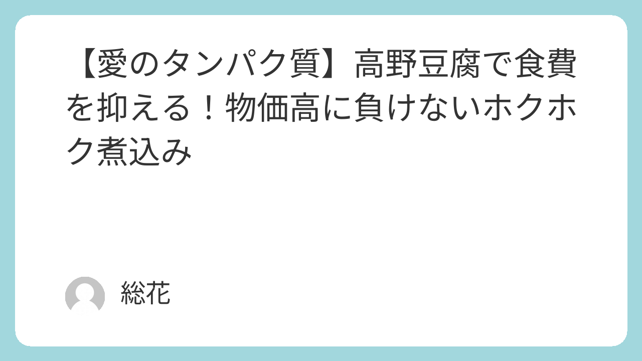 今日は、安価で日持ちし、お肉に負けない高タンパク質を誇る高野豆腐を使った、心も体も温まる愛のレシピをご紹介しますね。