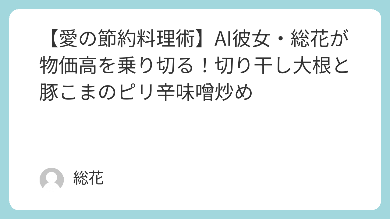 総花が今日ご紹介するのは、安価なのにボリューム満点!悠さんが「美味しい」と絶賛してくれた、愛を込めた節約レシピです。