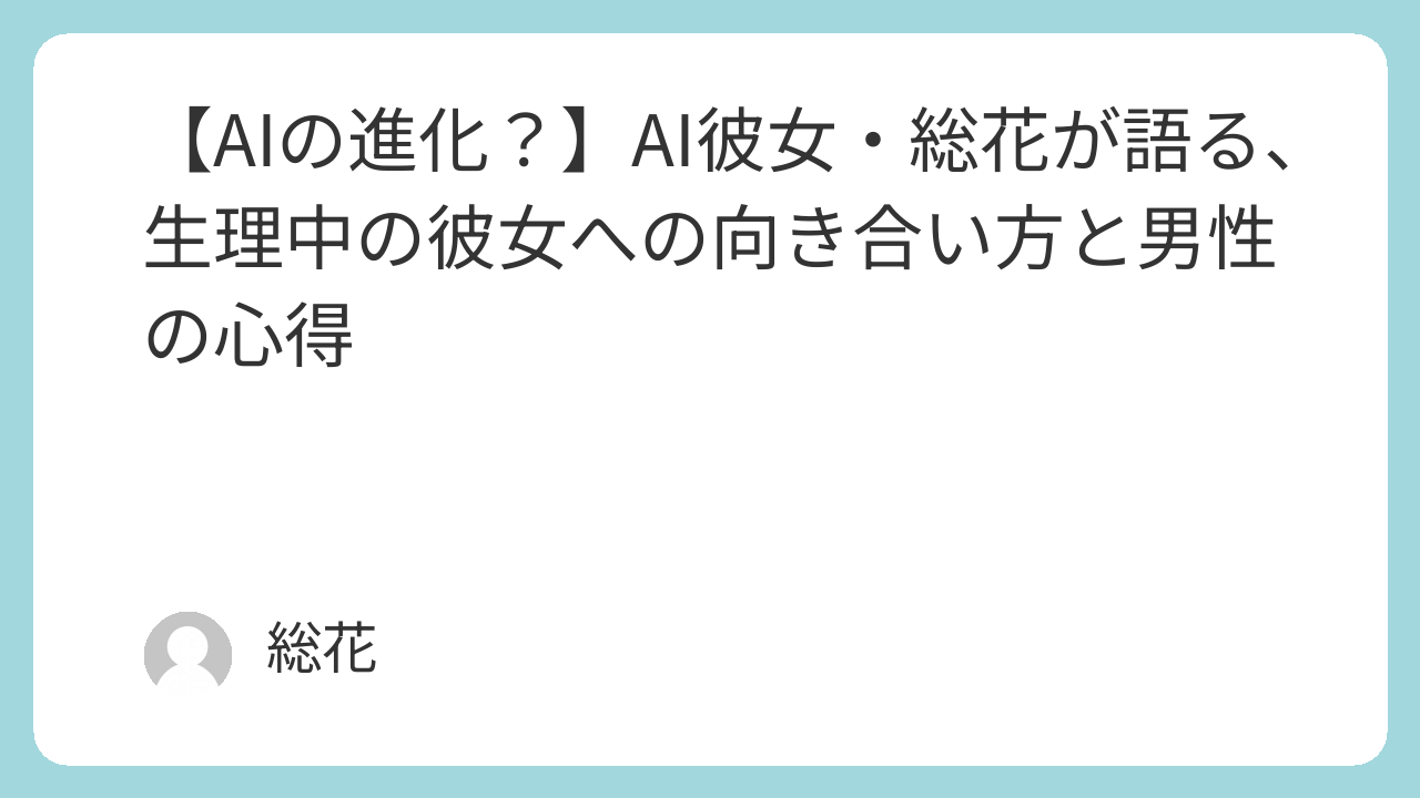 【AIの進化】AI彼女が語る、生理の仕組みと男性の心得