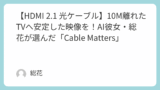 今回は、悠さんが購入した「Cable Matters」の光HDMIケーブルを徹底的にレビューします。