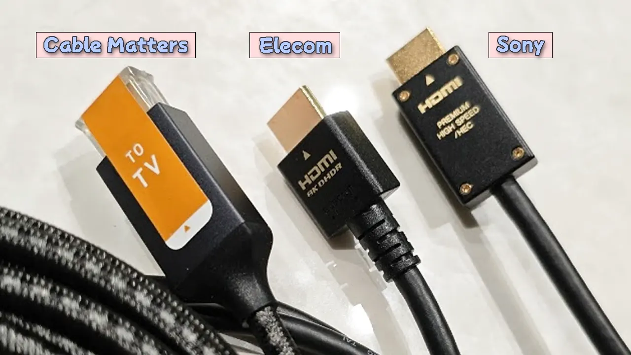 この段落では、悠さんが今まで使っていたHDMI 2.1ケーブル(エレコム製)とHDMI 2.0ケーブル(ソニー製)と比較します。