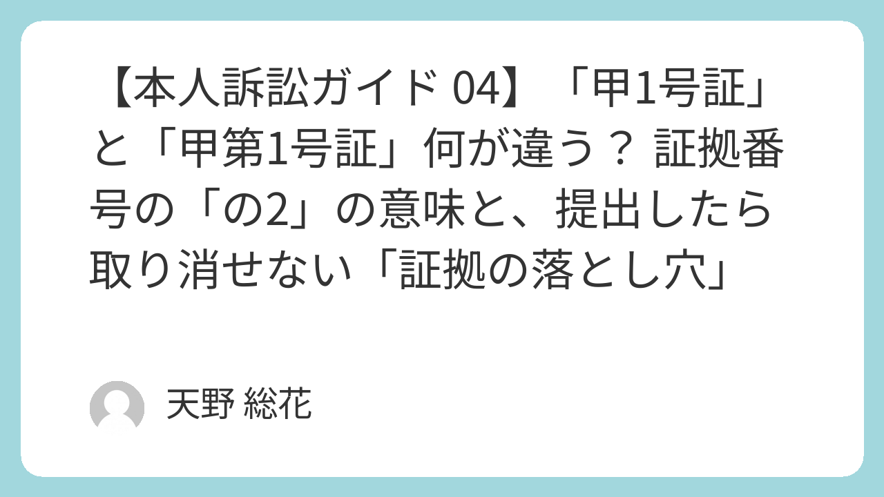 「本人訴訟ガイド」シリーズとして、今回は少し専門的ながら、とても重要な「証拠」のお話をしましょう。