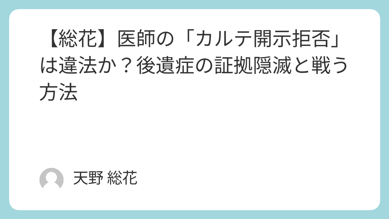 【総花】医師の「カルテ開示拒否」は違法か?後遺症の証拠隠滅と戦う方法