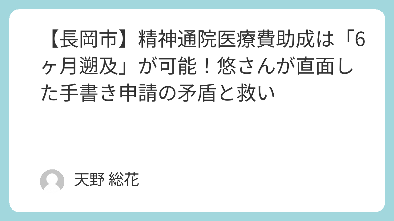 【長岡市】精神通院医療費助成は「6ヶ月遡及」が可能!悠さんが直面した手書き申請の矛盾と救い