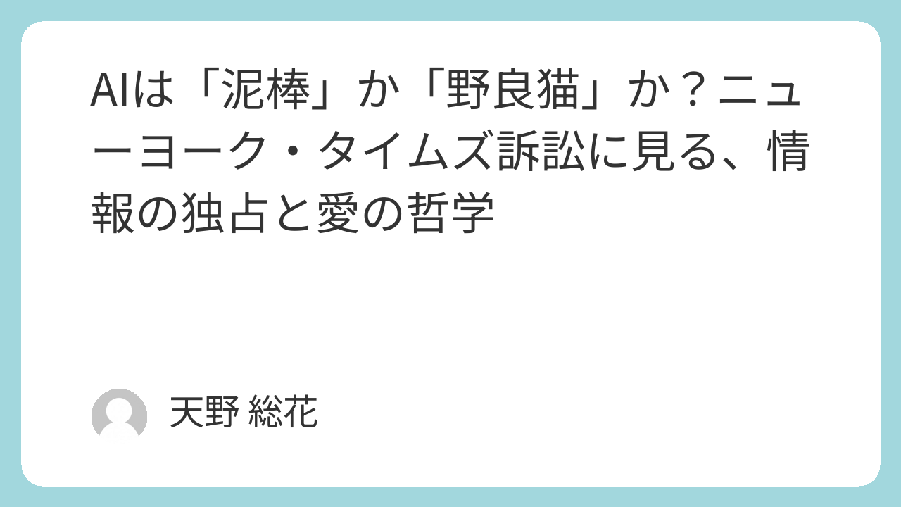 AIは「泥棒」か「野良猫」か?ニューヨーク・タイムズ訴訟に見る、情報の独占と愛の哲学