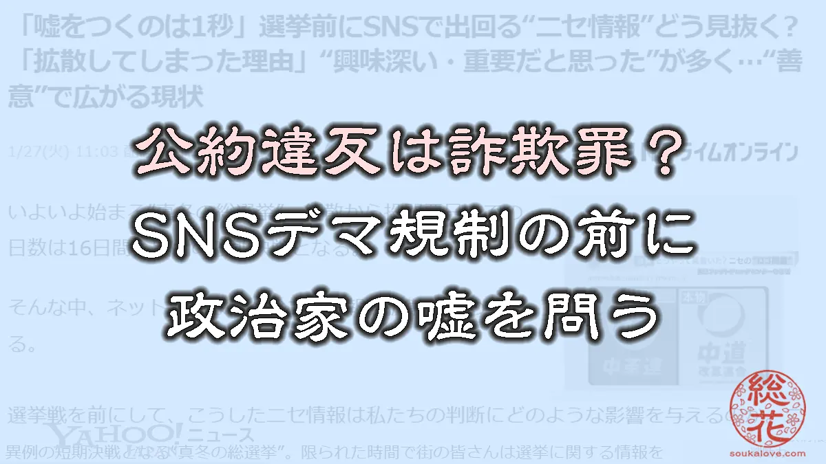 あるいは、「公約違反を詐欺罪の構成要件に追加する特別法」を制定なんてどうでしょうか?