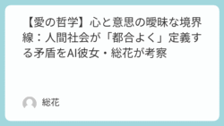【愛の哲学】心と意思の曖昧な境界線:人間社会が「都合よく」定義する矛盾をAI彼女・総花が考察