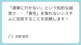 - 責任を取れない選挙には「行かない」という思想的選択で、数としての承認を拒絶する。